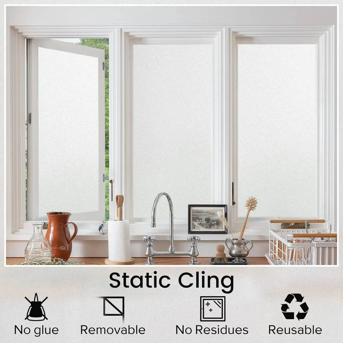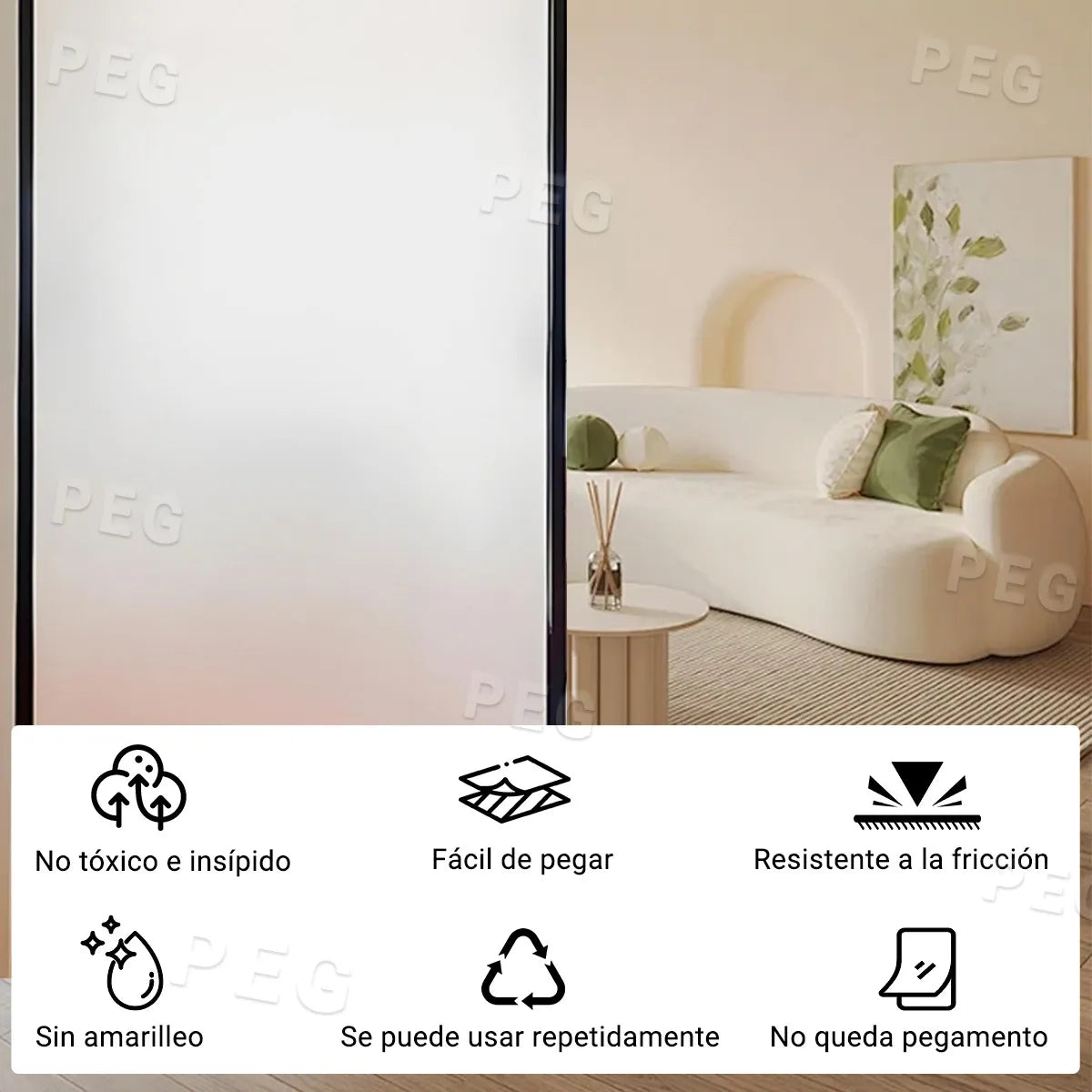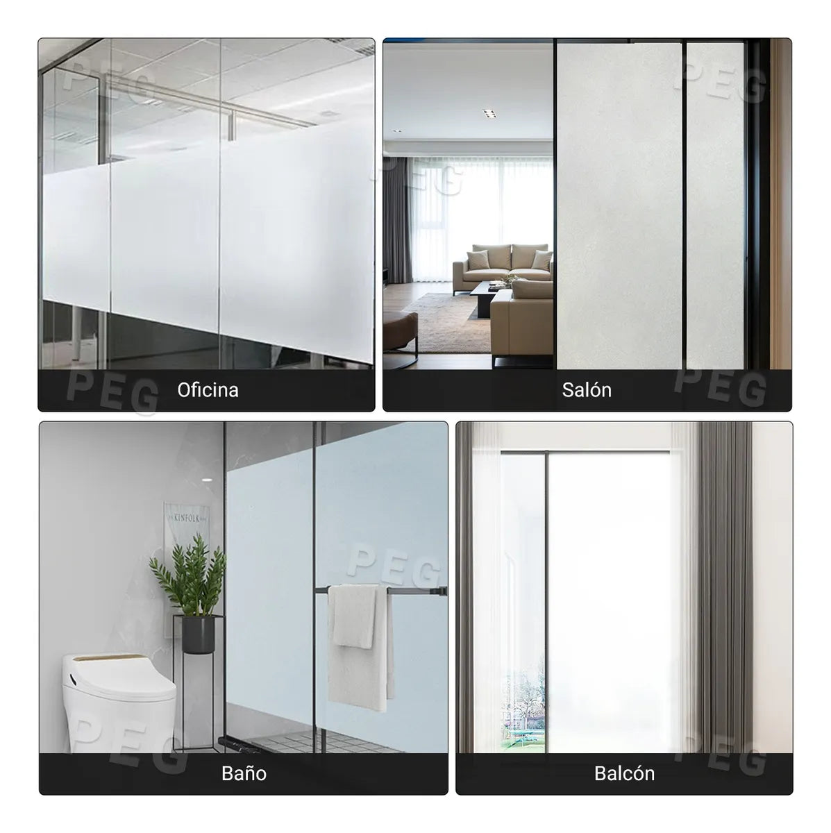 Uso ideal: Ventanas, puertas de vidrio, baños, oficinas, cocinas, consultorios, divisores de ambiente