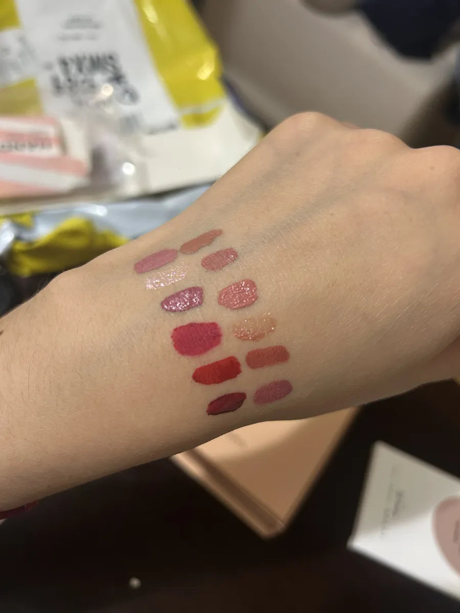 Los tonos están muy lindos , tienen un olor como a chicle. Están bonitos para regalo o para uso propio, como son varios tonos te funciona para combinar diferentes maquillajes. La transferencia es mínima.
