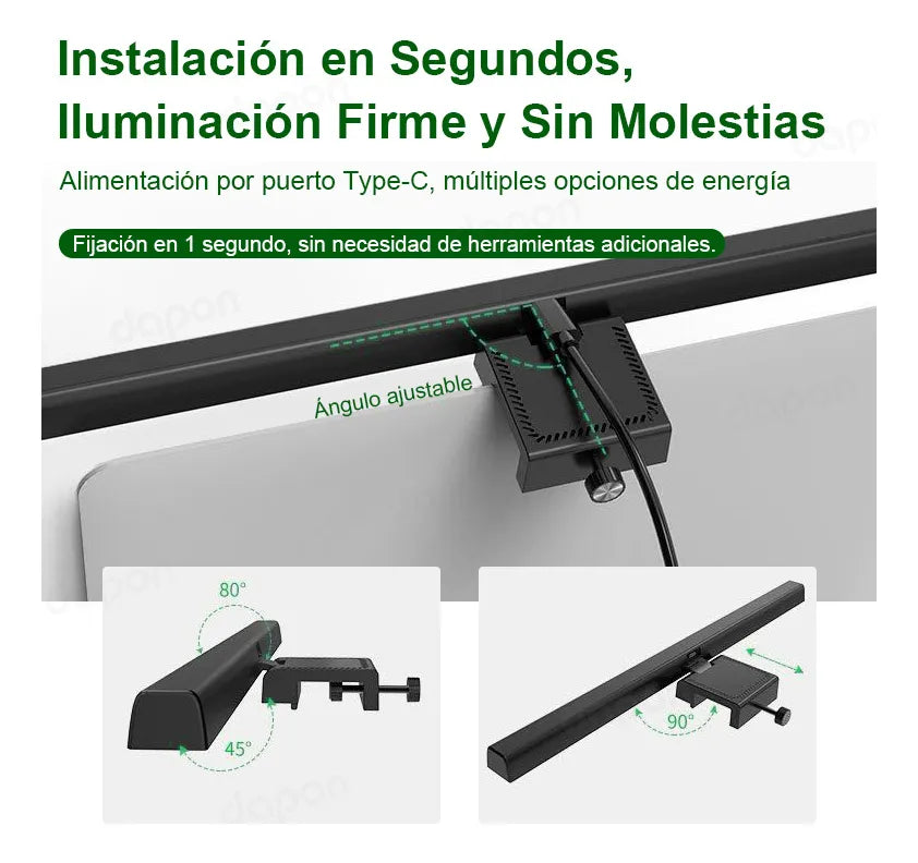 Diseño compacto y elegante: Con un diseño estilizado y compacto, la lámpara se adapta perfectamente a la parte superior de tu monitor, mejorando la estética de tu espacio de trabajo sin ocupar espacio adicional ni ser una distracción visual.
